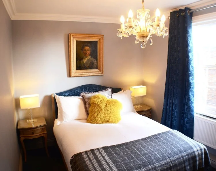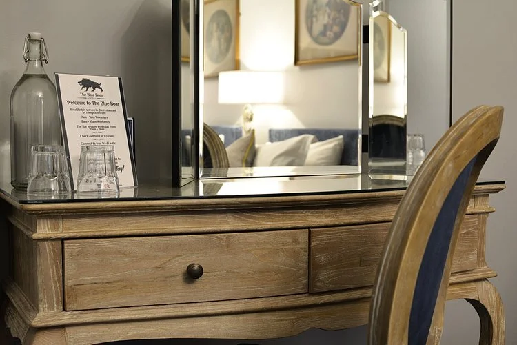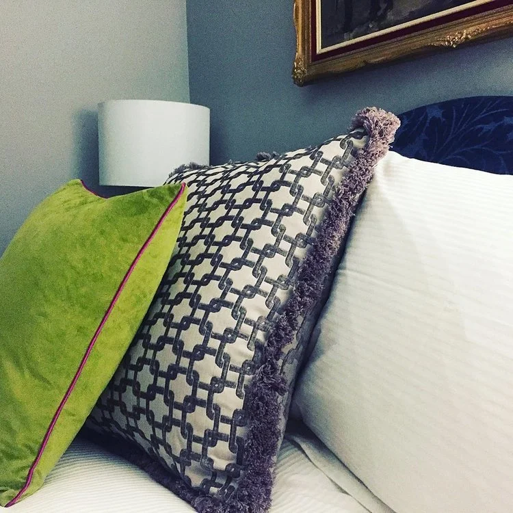 Working to a tight budget but still keeping the character, I made structural and internal design changes to create beautiful yet functional spaces for guests to enjoy, providing all the luxury you'd expect from a modern high-end hotel but in keeping with the feel of the buildings history. Every room was different in terms of shape and size which gave me the opportunity to add unique touches to each space including cushions, paintings and accessories, but yet tie them in with the Blue Boar theme.